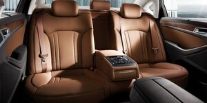 Пятиместный салон Hyundai Genesis — это, мягко говоря, нечто. Роскошные и дорогостоящие материалы повсюду: есть и натуральная кожа Nappa, и дерево, и алюминиевые детали, наделяющие интерьер особой изысканностью. Цвета в интерьере — «дорогие», радующие глаз. Уютную и дружелюбную атмосферу также создают стильные аналоговые часы и элегантная подсветка дверных порогов.