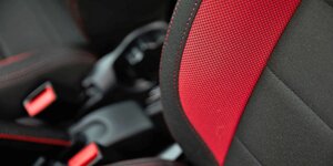 • Отделка руля, чехла КПП кожей с красной отстрочкой