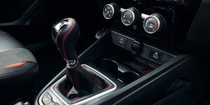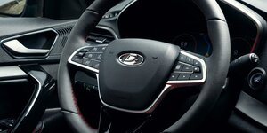 • Отделка руля, чехла КПП кожей с красной отстрочкой