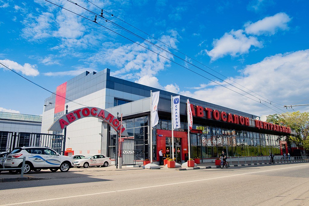 - За этим зданием находится бесплатный транспорт к автосалону "Центральный" (перед магазином "Перекрёсток").
